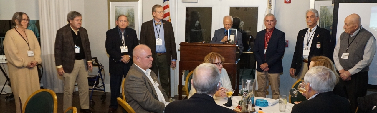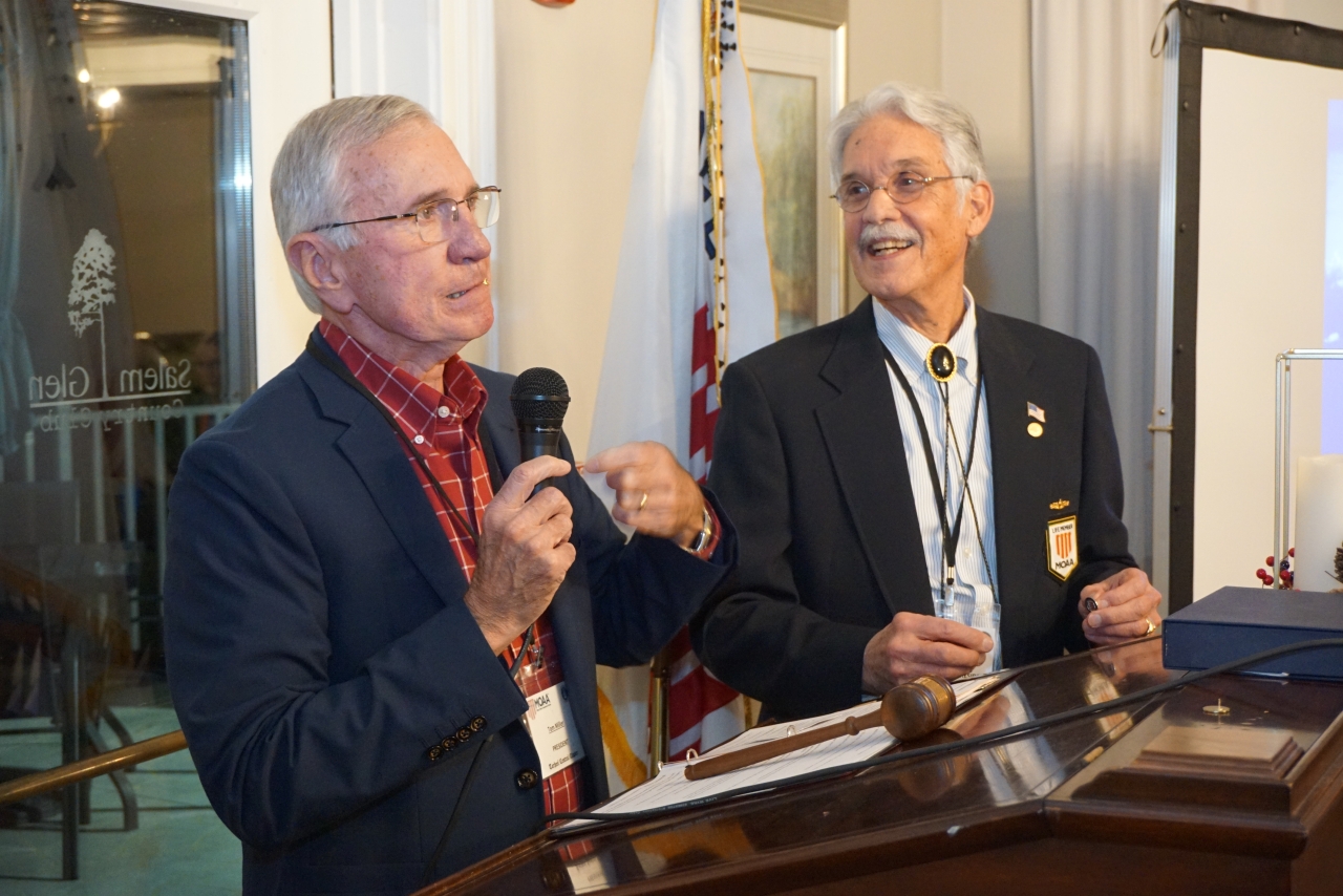 This was also our installation of the new Board, with Tom Miller assuming the Presidency from Phil Briscoe, the passing of the gavel and an award of thanks to Phil for perhaps the most productive Presidency the Chapter has ever experienced. In company with Ted Robinson, he built a vibrant and trebled membership with formalized guide lines taking us solidly into the future. Yeoman's work. Bravo Zulu.