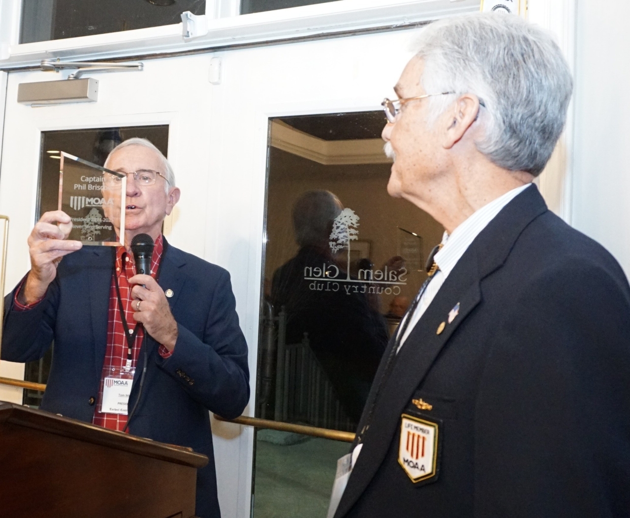 This was also our installation of the new Board, with Tom Miller assuming the Presidency from Phil Briscoe, the passing of the gavel and an award of thanks to Phil for perhaps the most productive Presidency the Chapter has ever experienced. In company with Ted Robinson, he built a vibrant and trebled membership with formalized guide lines taking us solidly into the future. Yeoman's work. Bravo Zulu.