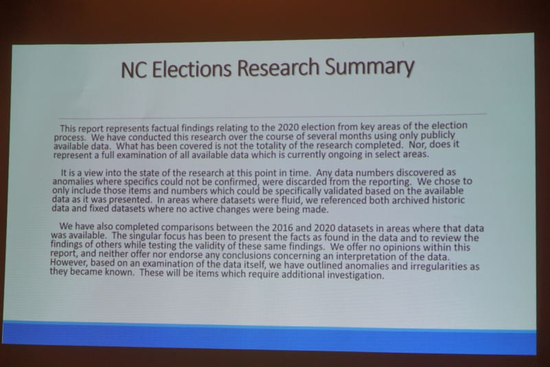 The subject of this presentation was Election Integrity in North Carolina.